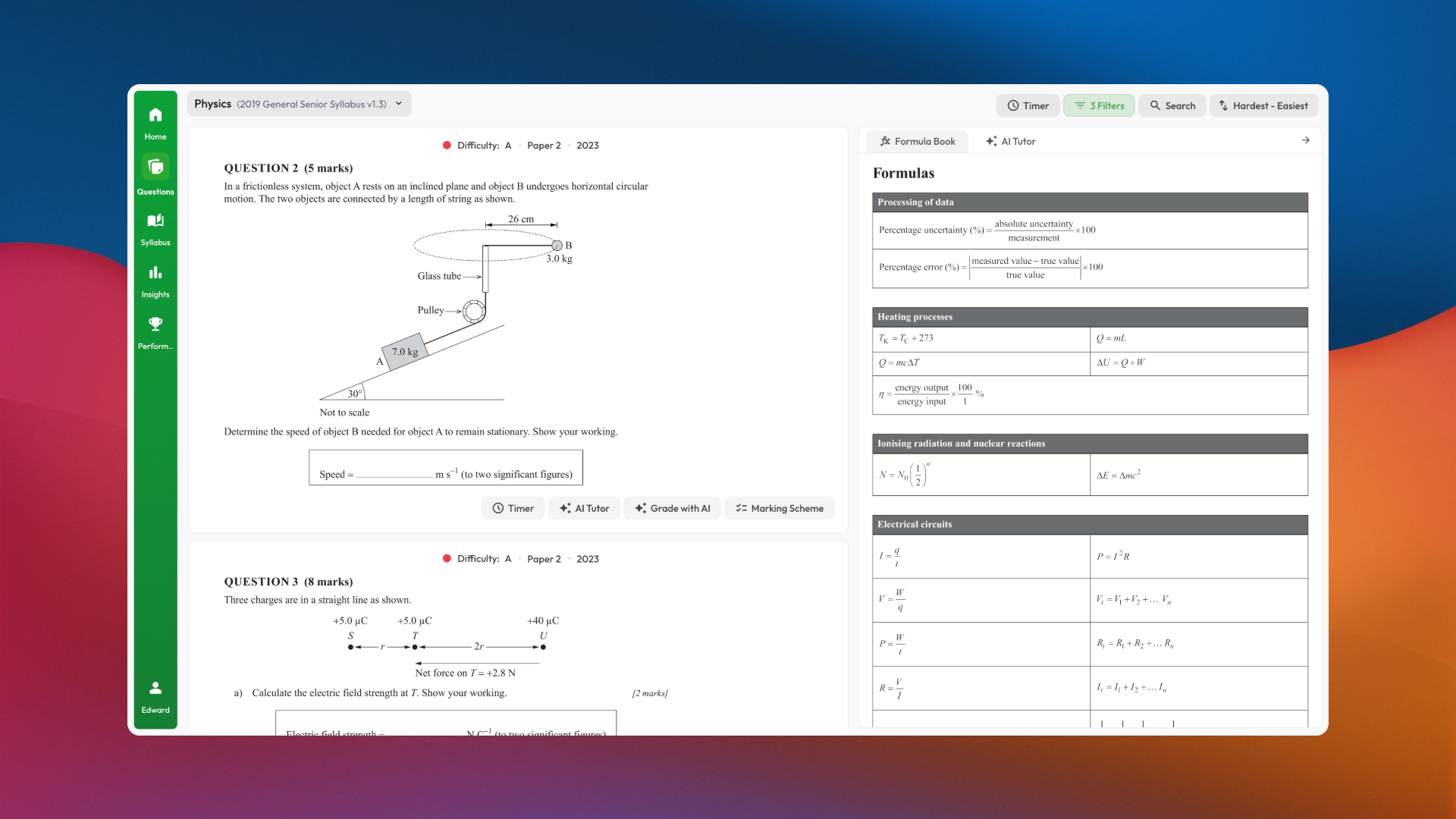 Questions is at the heart of Exam Insights, offering a flexible playground for exploring past QCAA external exam questions. It’s more than just a question bank-you have full control over what you see by combining powerful filters to narrow down exactly what you need. Filter by unit, topic, sub-topic, difficulty, cognitive verbs, and more to pinpoint the most relevant questions for your study or teaching focus. Whether you’re searching for a specific type of question or a broader range, everything you need is in one place-including the formula book, marking scheme, and any relevant stimulus.