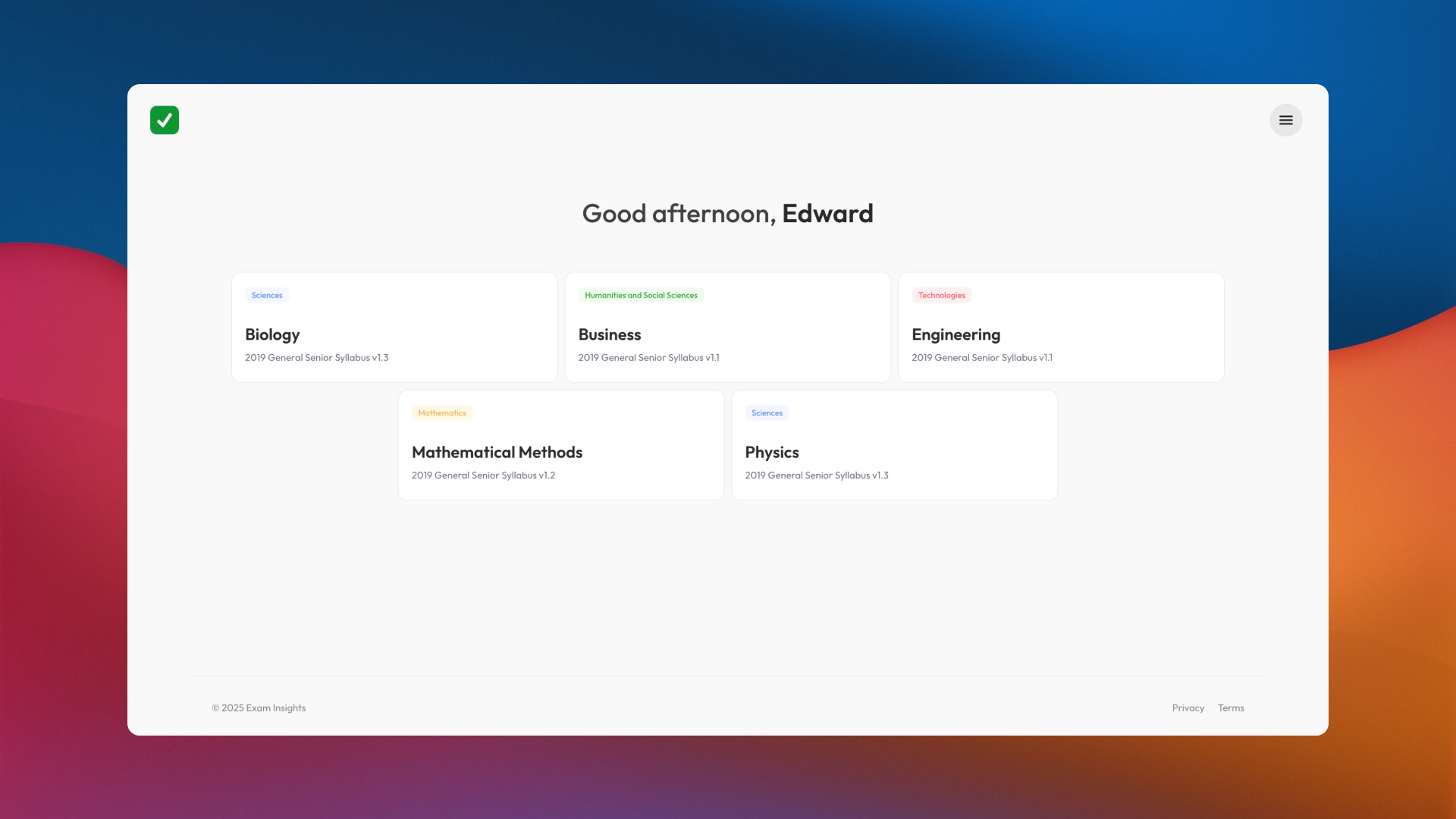 When you sign in, you’ll land on My Subjects, your central hub for tracking your subjects and progress.